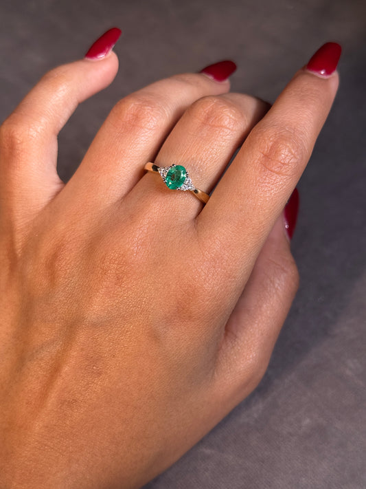 Lab Grown Diamonds & Natural Emerald Set in 9K Yellow Gold.