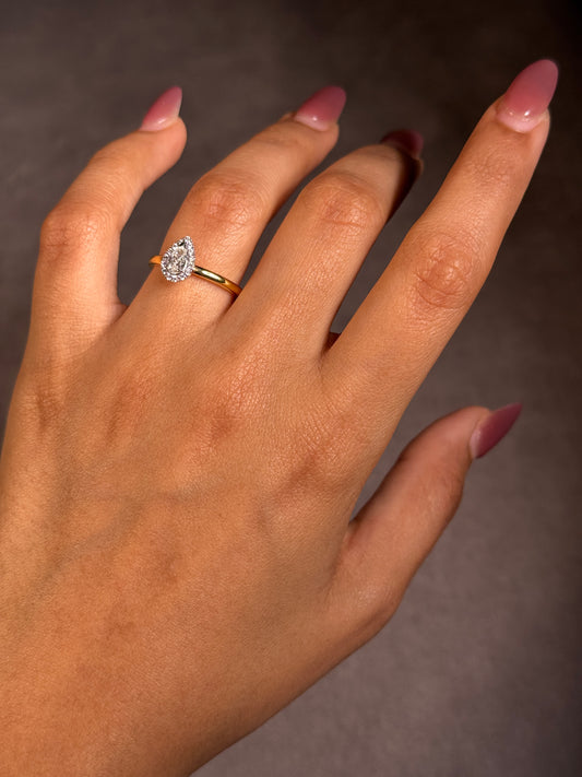 0.41 Carat Pear Cut Halo Diamond Ring in 18K Yellow Gold