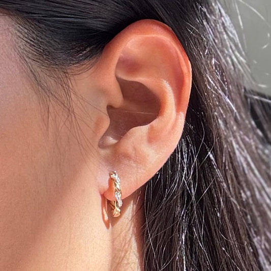 0.09 Carat Diamond Set Twist Huggies in 9 Carat Yellow Gold