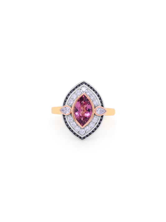 Georges Guillaume Ring Salmon Tourmaline & Diamond, set in 18K WG.