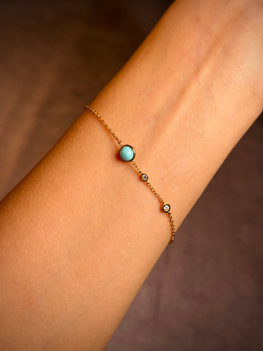 1.00ct Turqoise & 0.06 Carat Diamond Bracelet in 9 Carat Yellow Gold