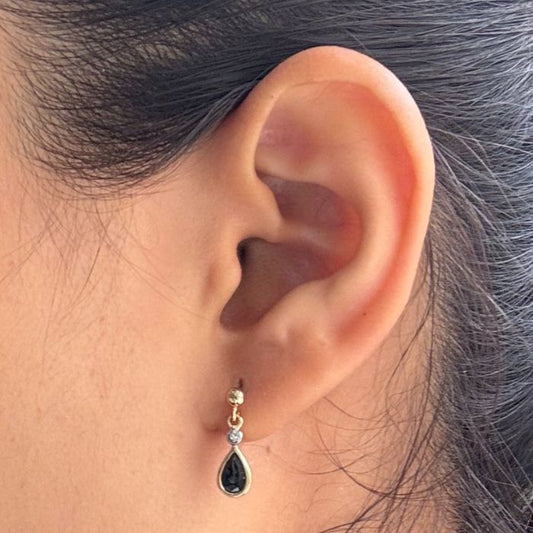 Black Onyx Clover Stud Earring in 9 Carat Yellow Gold