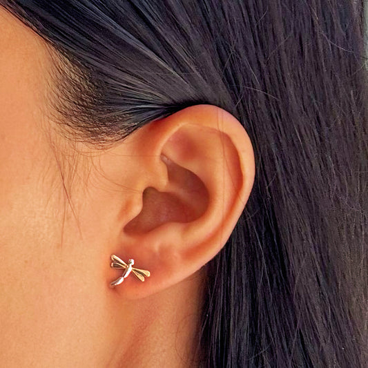 Dragonfly Stud Earrings in 9 Carat Yellow & White Gold