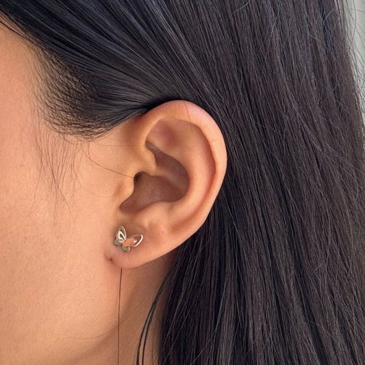 Butterfly Stud Earrings in 9 Carat Yellow & Rose Gold