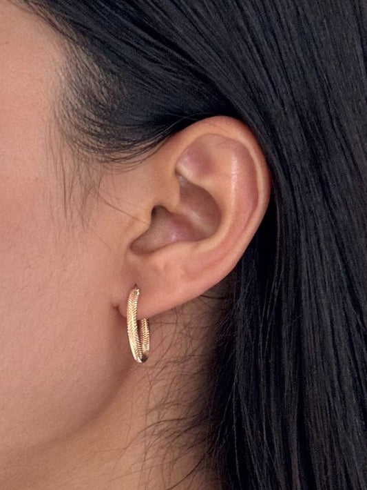 Hammered Hoop Earrings in 9 Carat Yellow Gold, 15x2.5mm