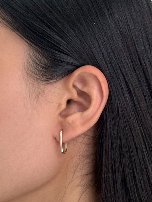 Oblong Huggie Earrings in 9 Carat Yellow Gold, 15x1.6mm