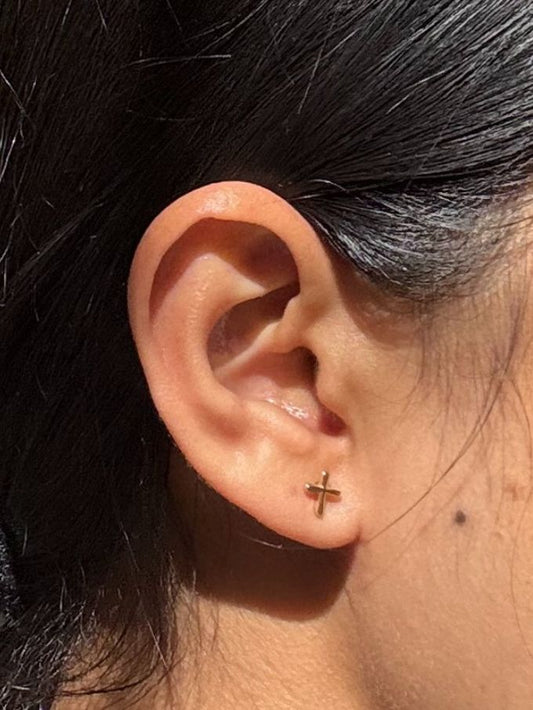 Small Cross Stud Earrings, 9 Carat Yellow Gold