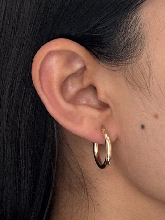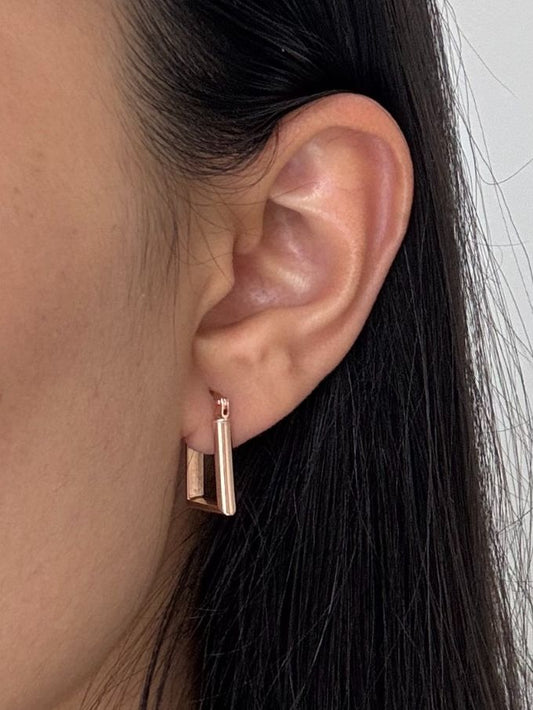 Plain Oblong Hoop Earrings in 9 Carat Rose Gold, 15mm