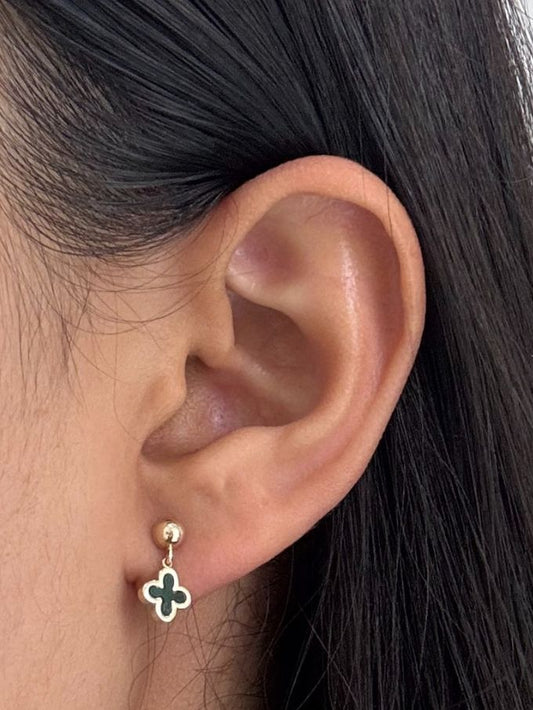 Fancy Malachite Medium Clover stud earrings, 9 Carat Yellow Gold