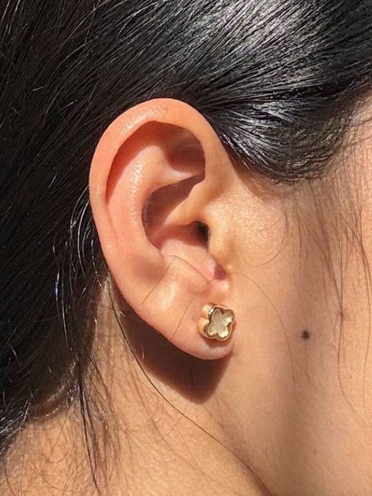 MOP Clover Earrings Set in 9 Carat Yellow Gold