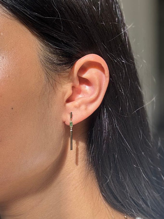 Rectangular Cut Green Stone Set Bar Drop Earrings, 9 Carat Yellow Gold