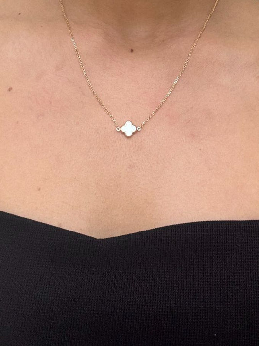 Small Mother Of Pearl Clover Pendant 9 Carat Yellow Gold