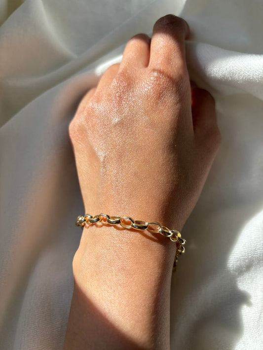 Simple Oval & Rectangular Link Bracelet in 9 Carat Yellow Gold