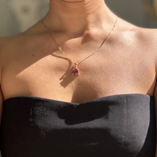 10.5x10mm Watermelon Tourmaline Set Pendant in 9 Carat Yellow Gold