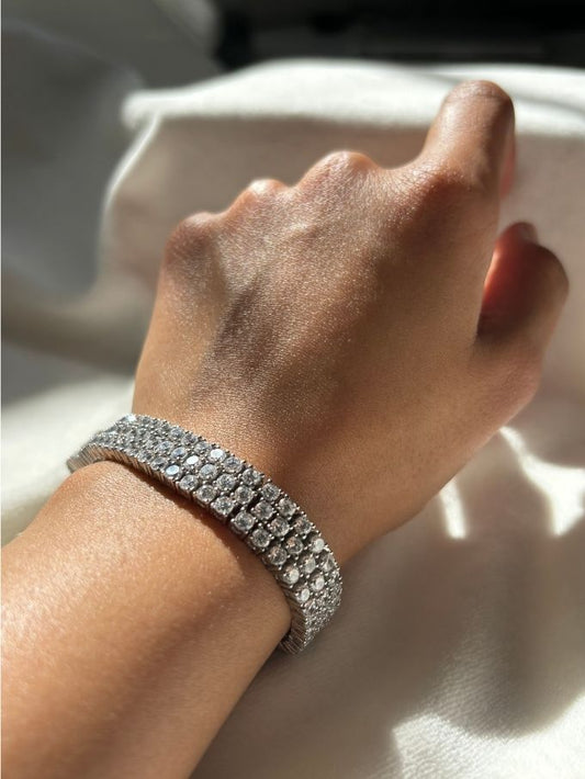 3 Row Claw Set Cubic Zirconia Silver Tennis Bracelet