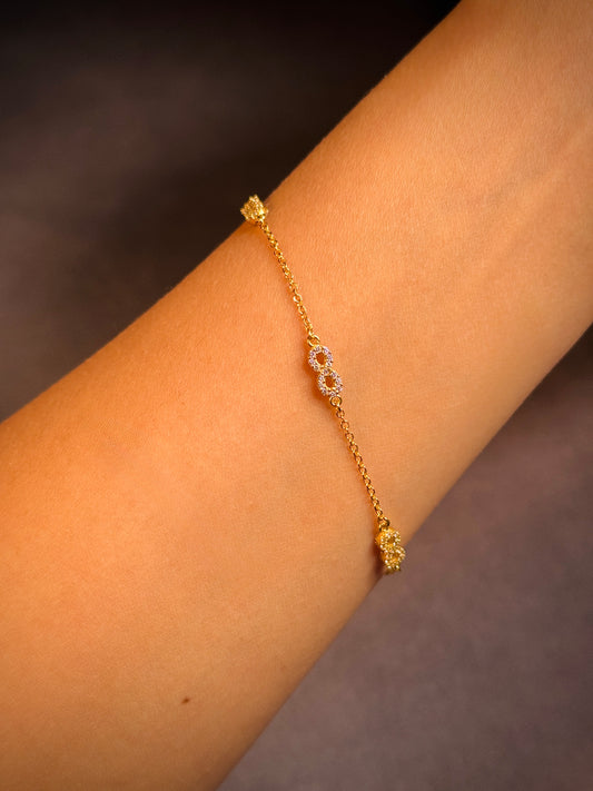 3 Cubic Zirconia Set Infinity Emblem Bracelet in 9 Carat Yellow Gold
