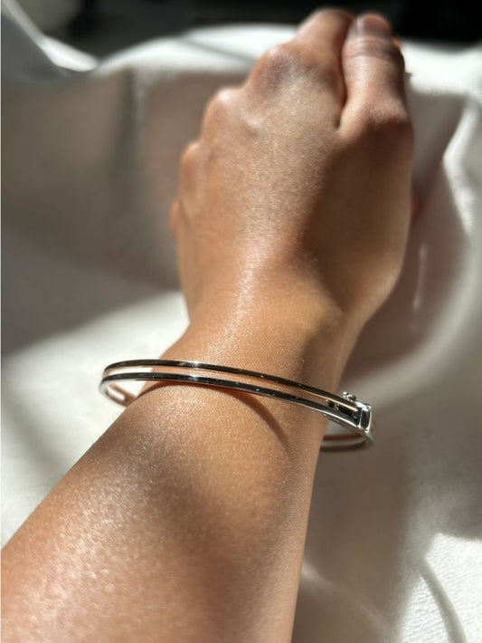 Two Tone Split Yellow and White Gold Bangle in 9 Carat Gold