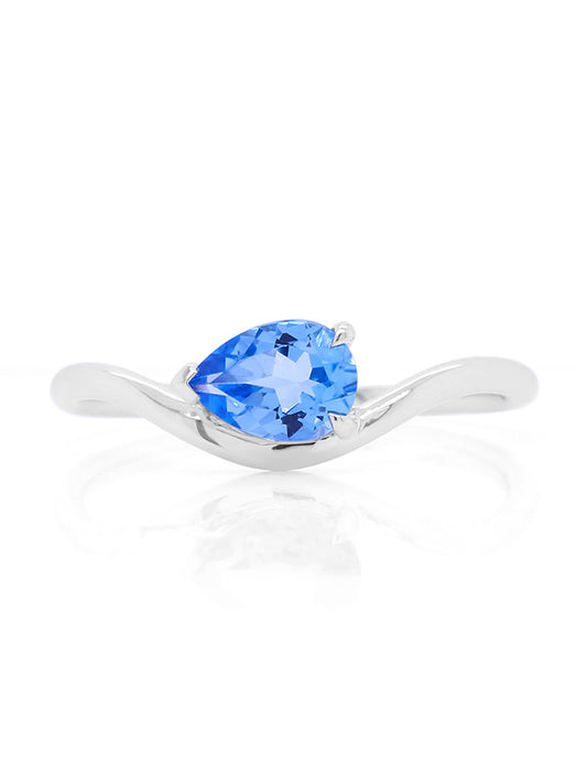 7x5mm Pear Shape London Blue Topaz Dress Ring in 9 Carat White Gold