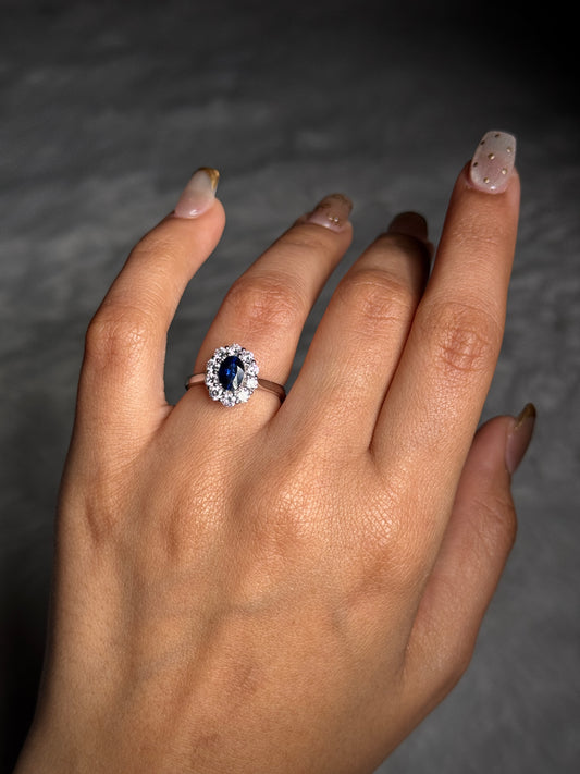 Lab Grown Diamond & Natural Sapphire Cluster Ring in 18K White Gold.