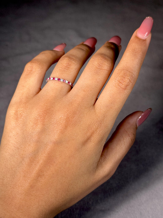 Ruby & Diamond Set Bright Band, 18K White Gold