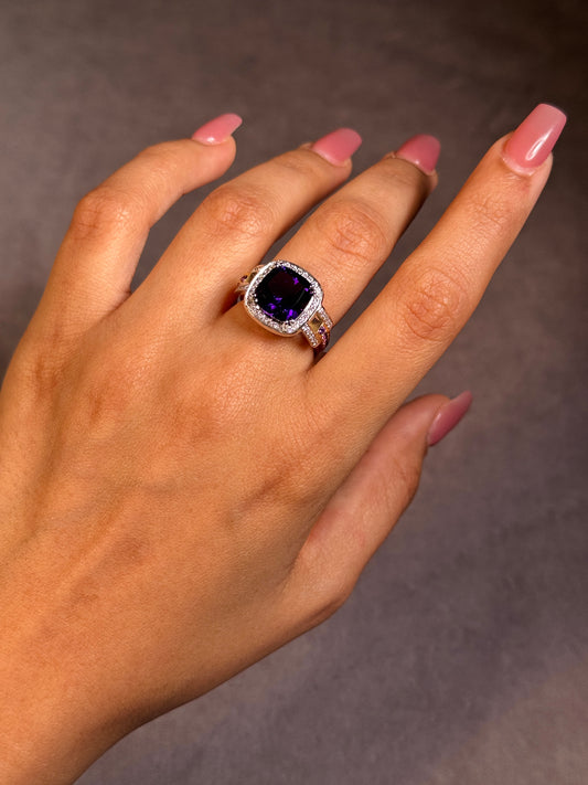 Georges Guillaume Ring, Amethyst & Diamond, 18 Carat 2 tone Gold.