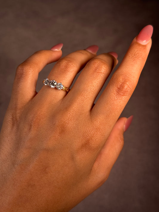 Lab Grown Diamond Trilogy Ring in 18 Carat Yellow White Gold T=1.10ct