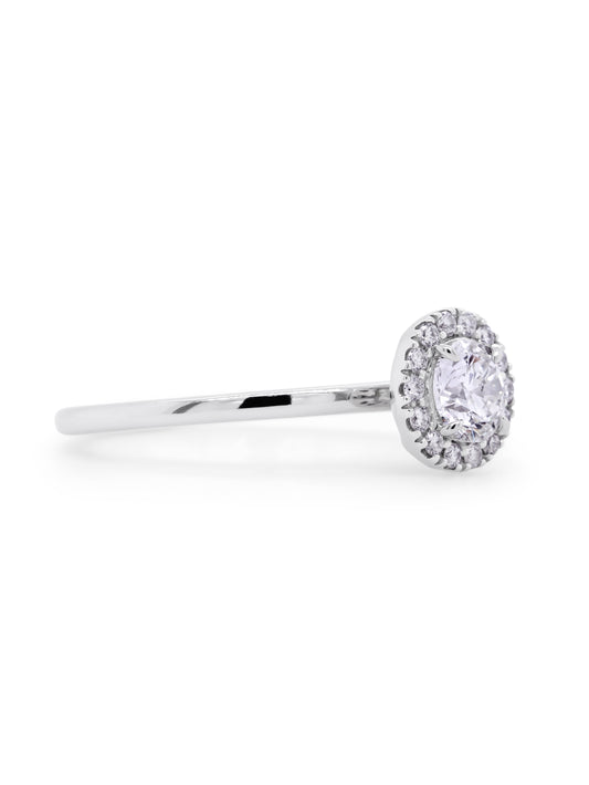 Lab Grown Diamond Halo Ring,T=0.71 Carat Diamonds,18 Carat White Gold.