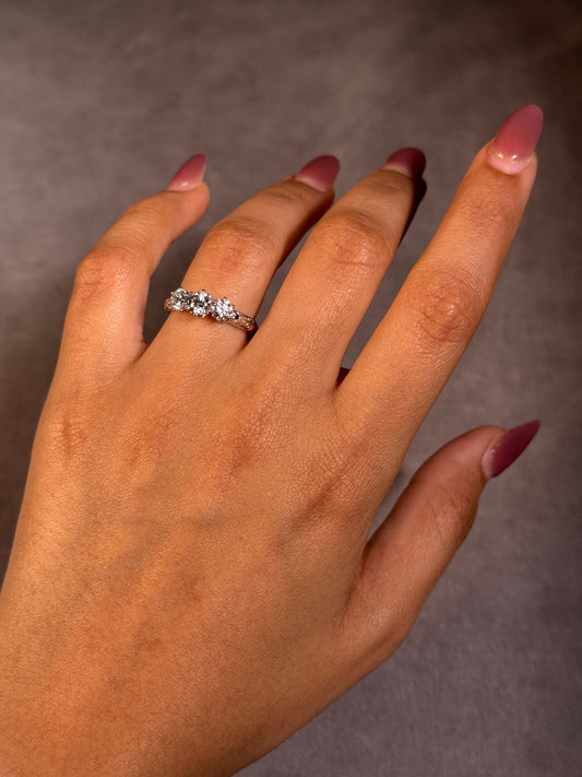 Lab Grown Diamond Trilogy Ring, 18K White Gold T=1.10ct