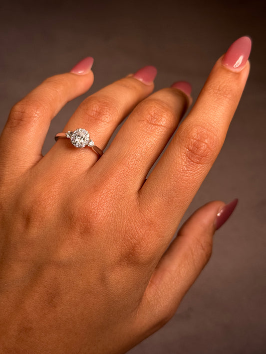 0.46 Carat Diamond Set, 18K White Gold Halo Ring