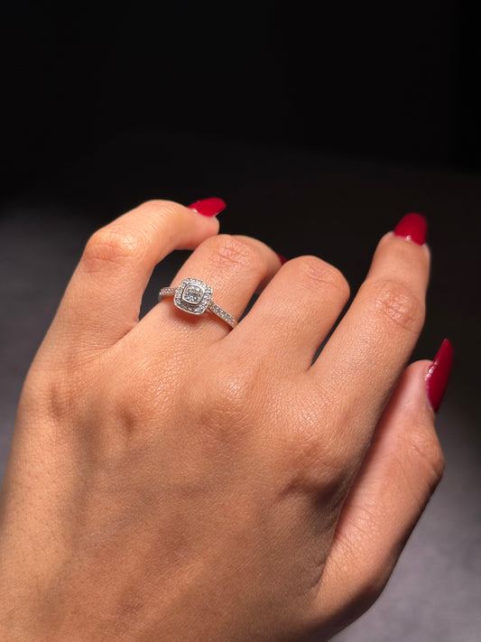 0.88 Carat Diamond Cluster Ring, 18K White Gold