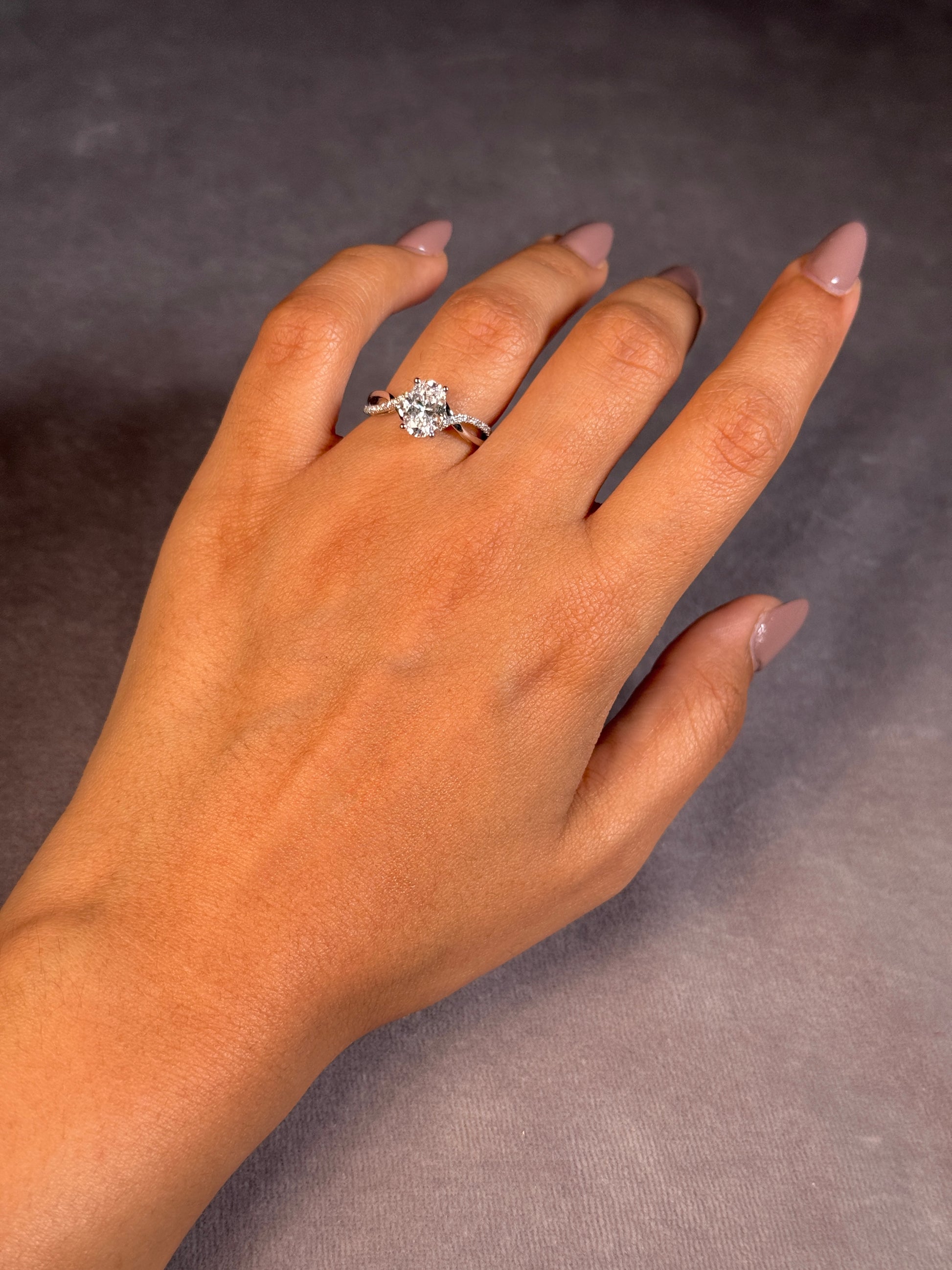 Elegant and ethically crafted, this ring showcases a stunning lab grown oval diamond set in luminous 18 carat white gold. A graceful blend of classic shape and modern brilliance.