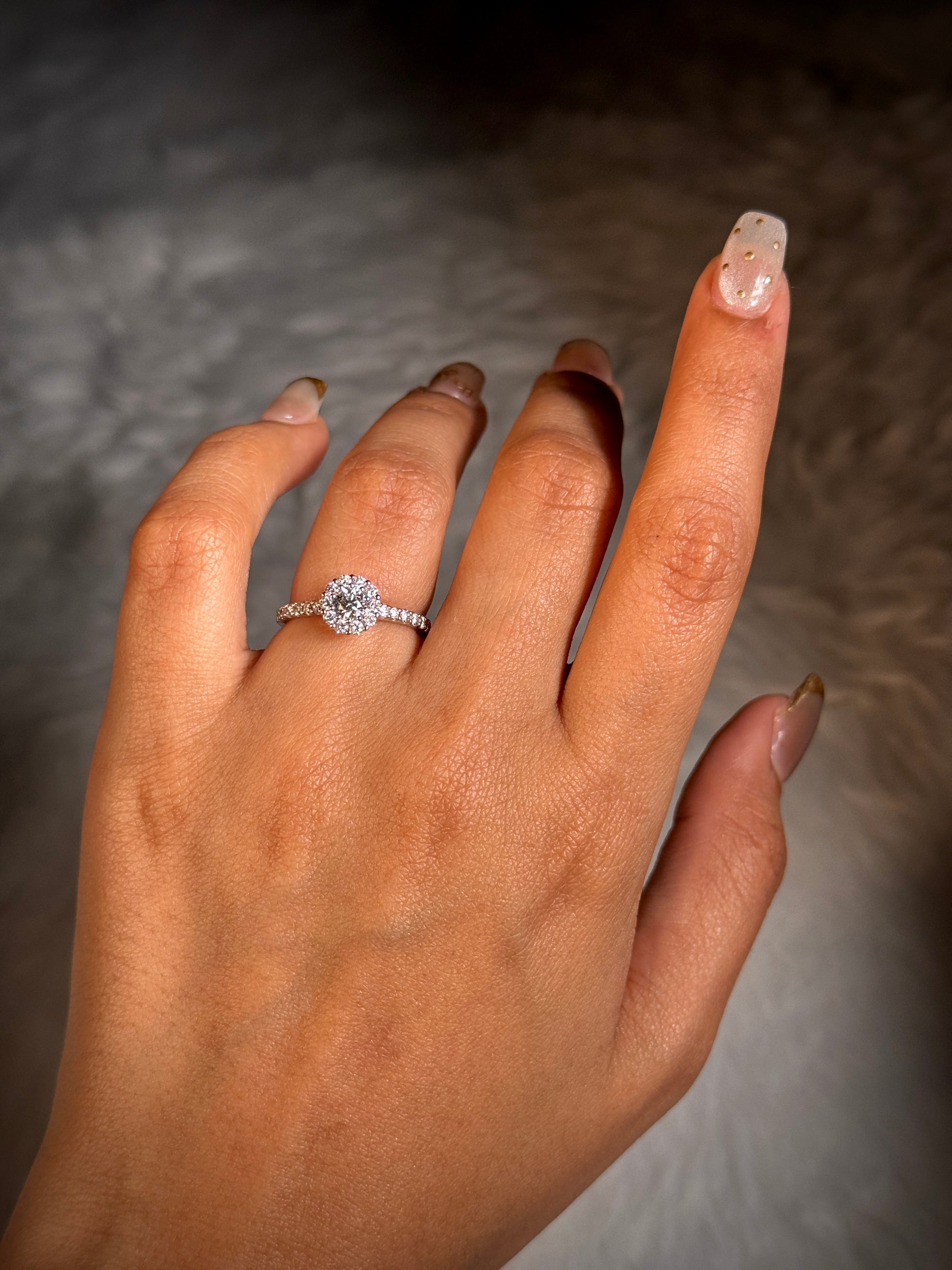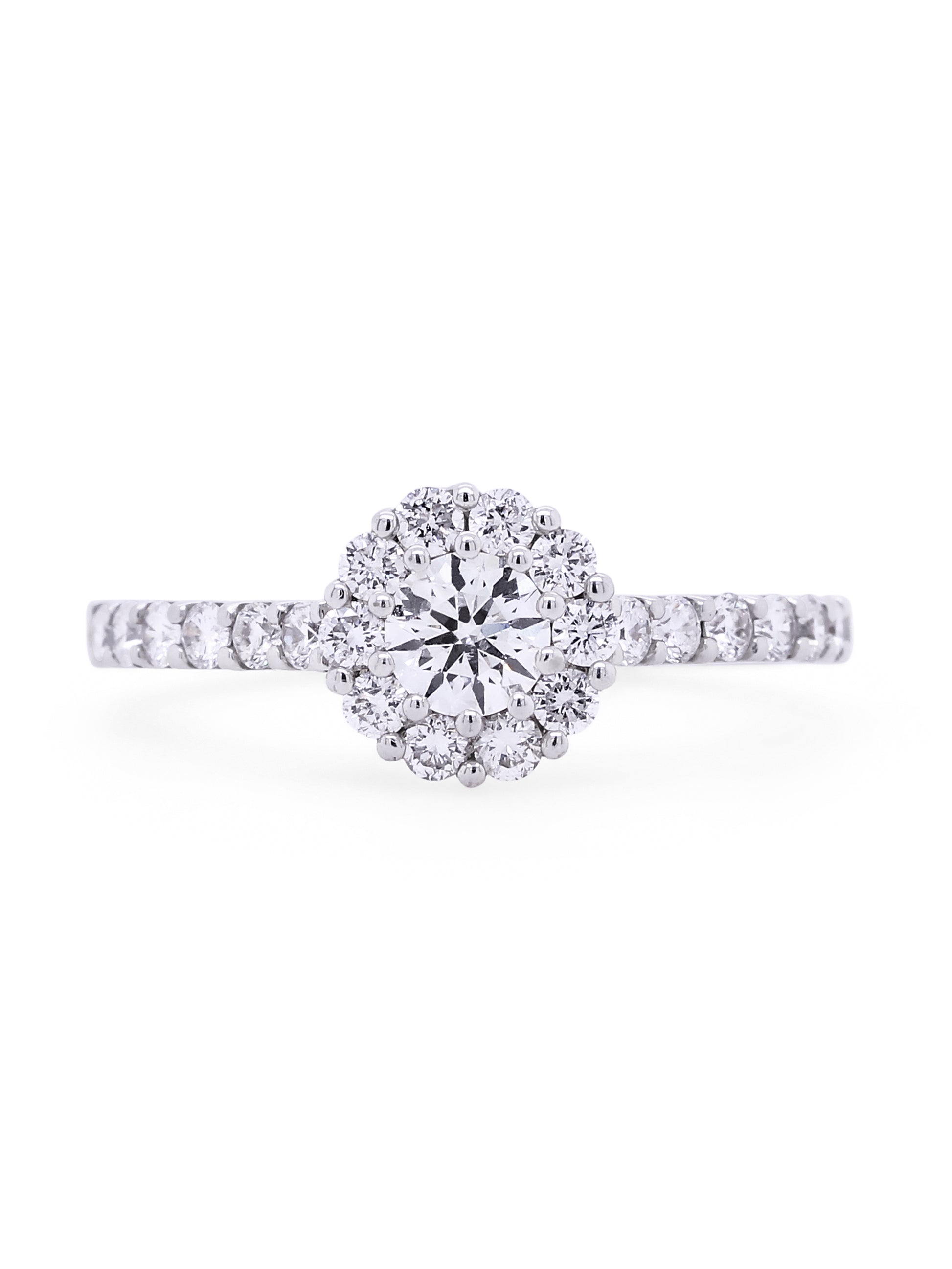 0.88 Carat Diamond Cluster Ring, 18K White Gold