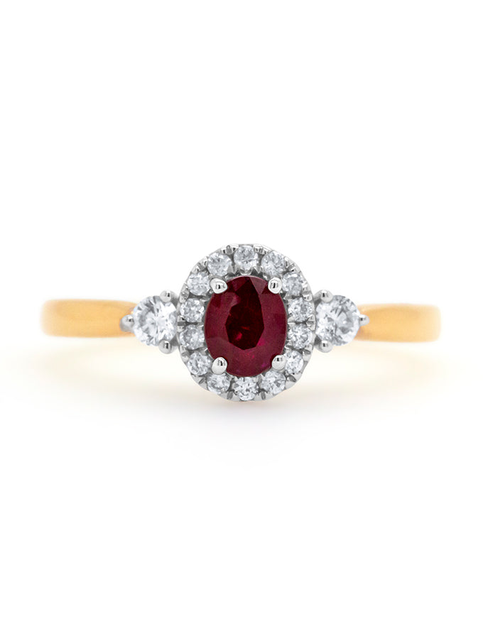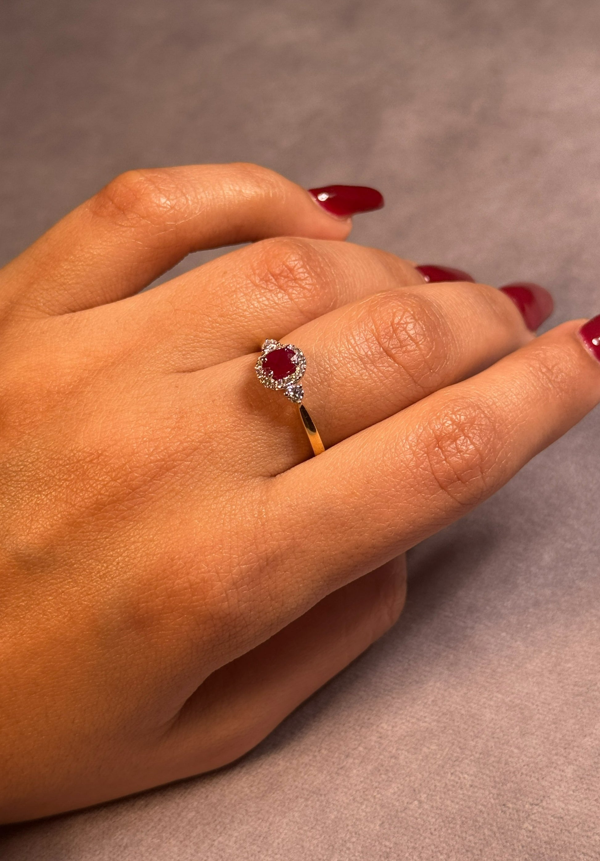 5x4mm Ruby & 0.22 Carat Diamond Ring set in 18K Yellow Gold