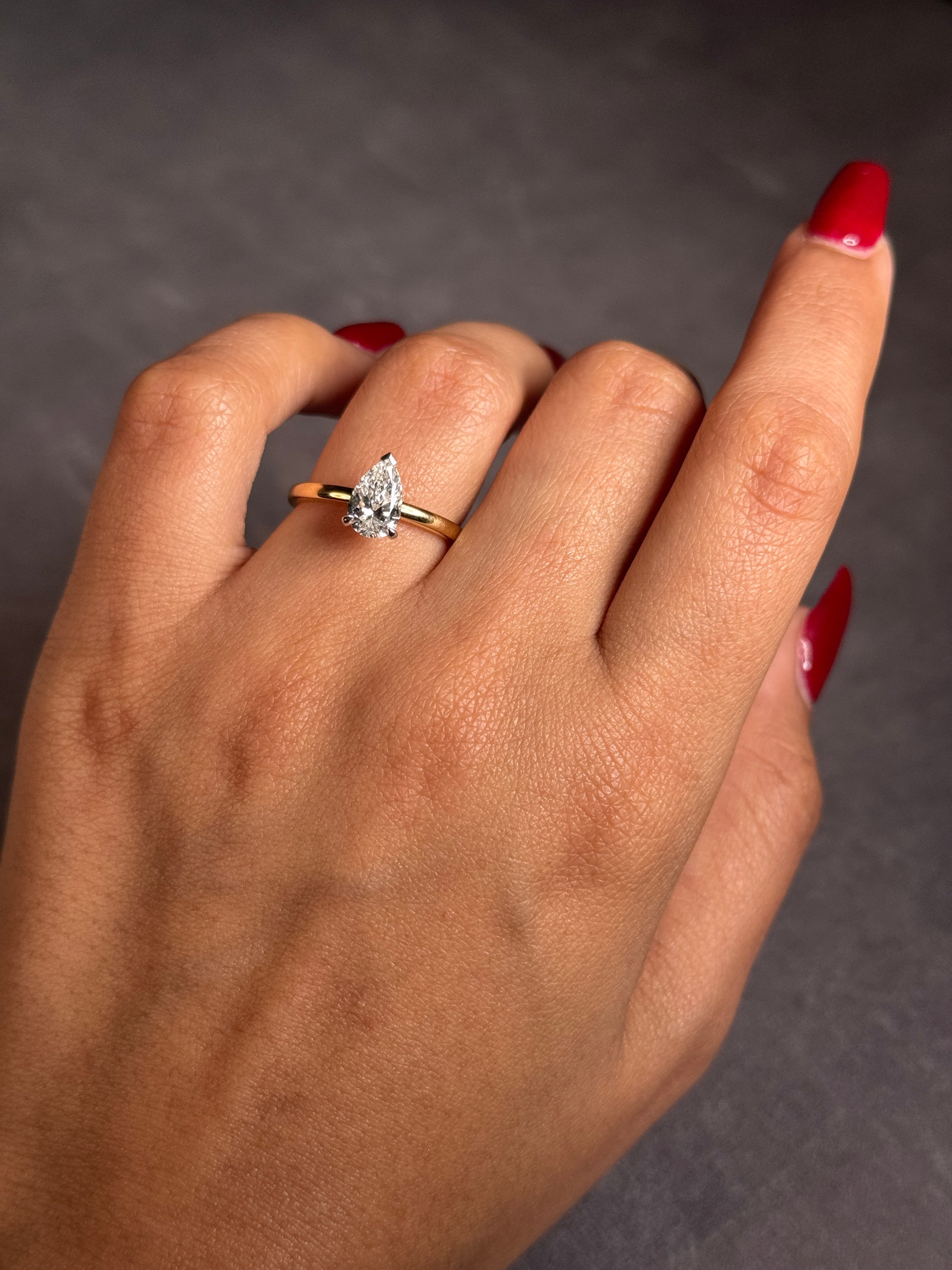 Lab Grown Pear Cut 1.01ct Diamond Ring in 18 Carat Yellow Gold