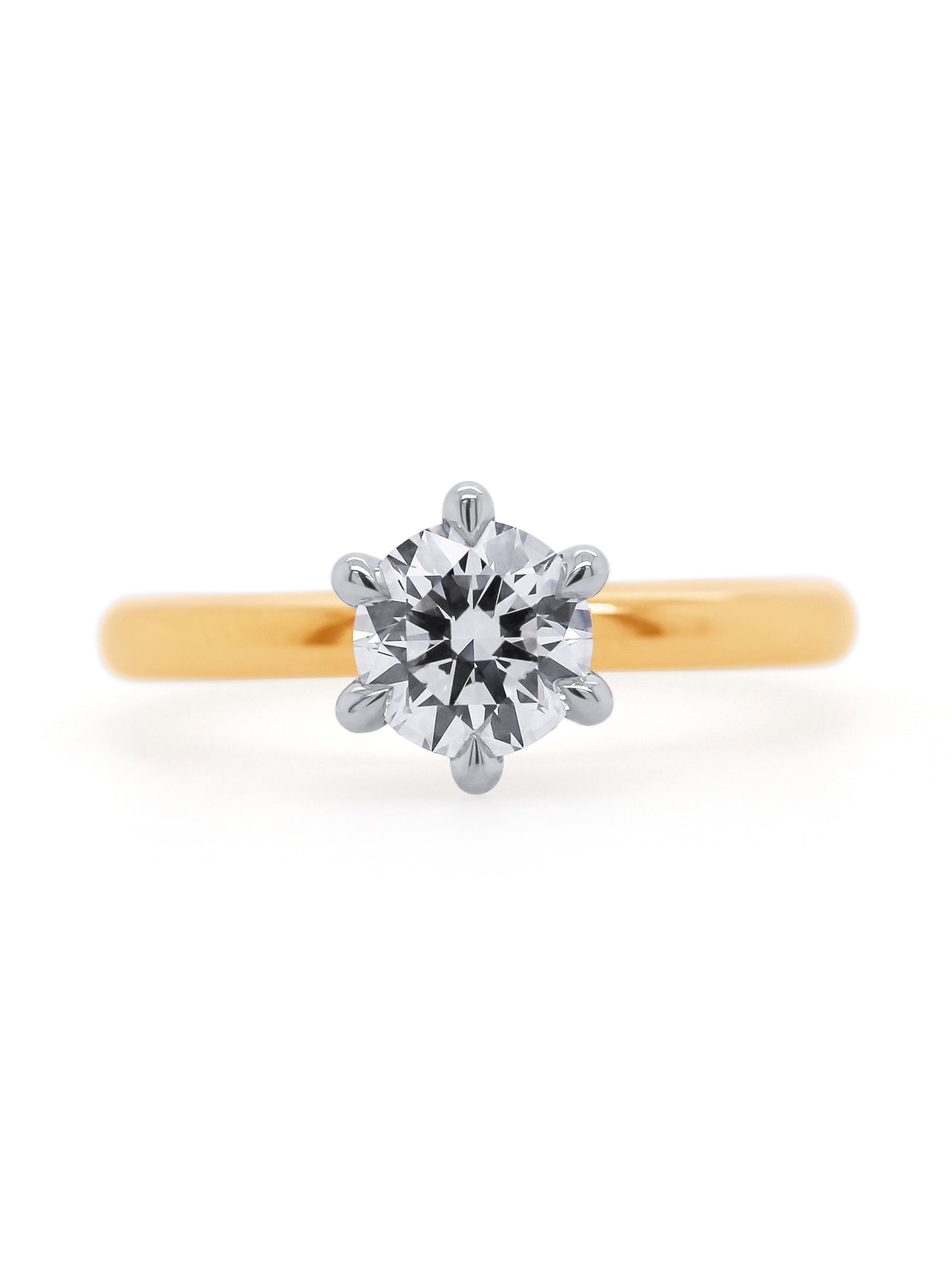 This elegant solitaire ring showcases a stunning round brilliant cut lab grown diamond, beautifully set in classic 18 carat yellow gold. Enhanced with subtle lab grown diamond accents, this design delivers timeless sophistication with added sparkle. A perfect engagement ring choice combining ethical luxury, exceptional brilliance, and refined craftsmanship.