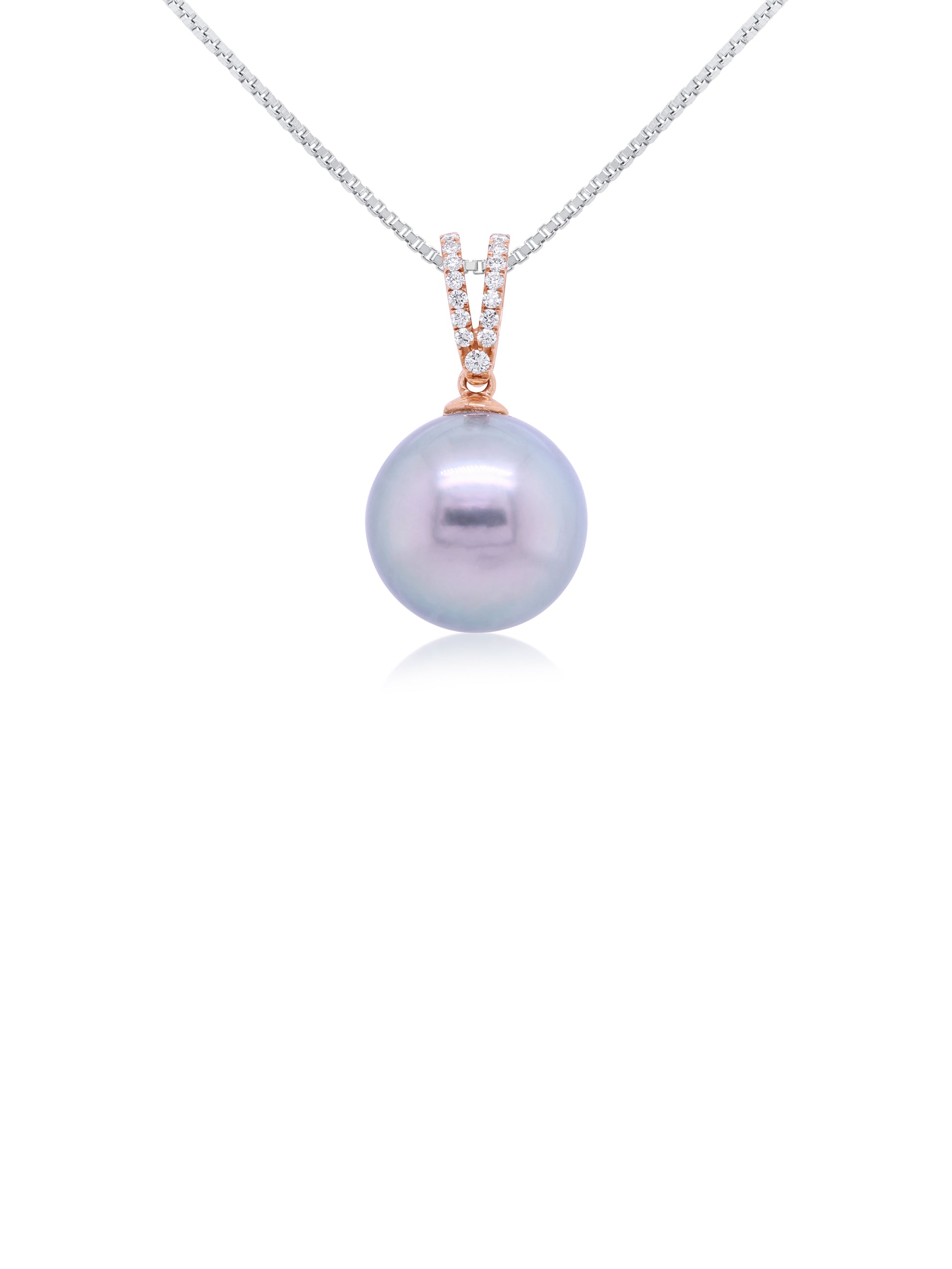 12mm Tahitian Pearl & Diamond Set Rose Gold Pendant, T=0.08ct.