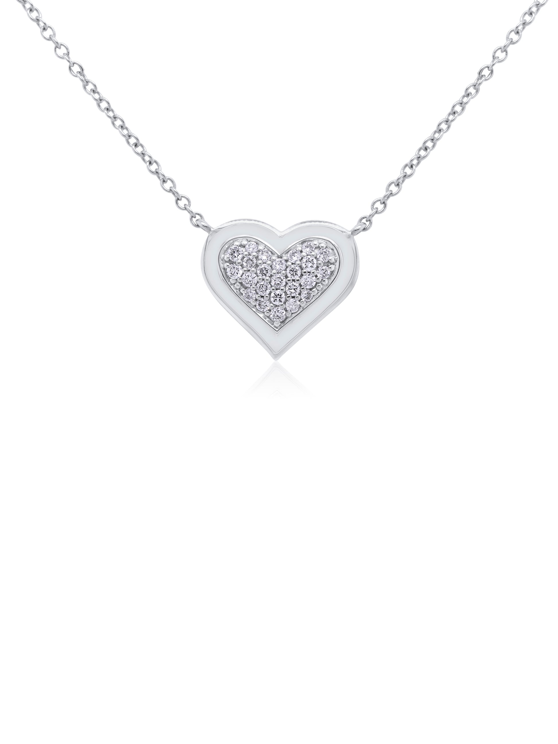 Add a touch of charm and sparkle with this black enamel and diamond heart pendant in 9 carat white gold. Set with 24 round brilliant diamonds totalling 0.12 carat (JK colour, SI3 clarity), it offers a modern twist on a timeless symbol. Paired with a 45cm chain, it's a perfect gift for someone specialor yourself.