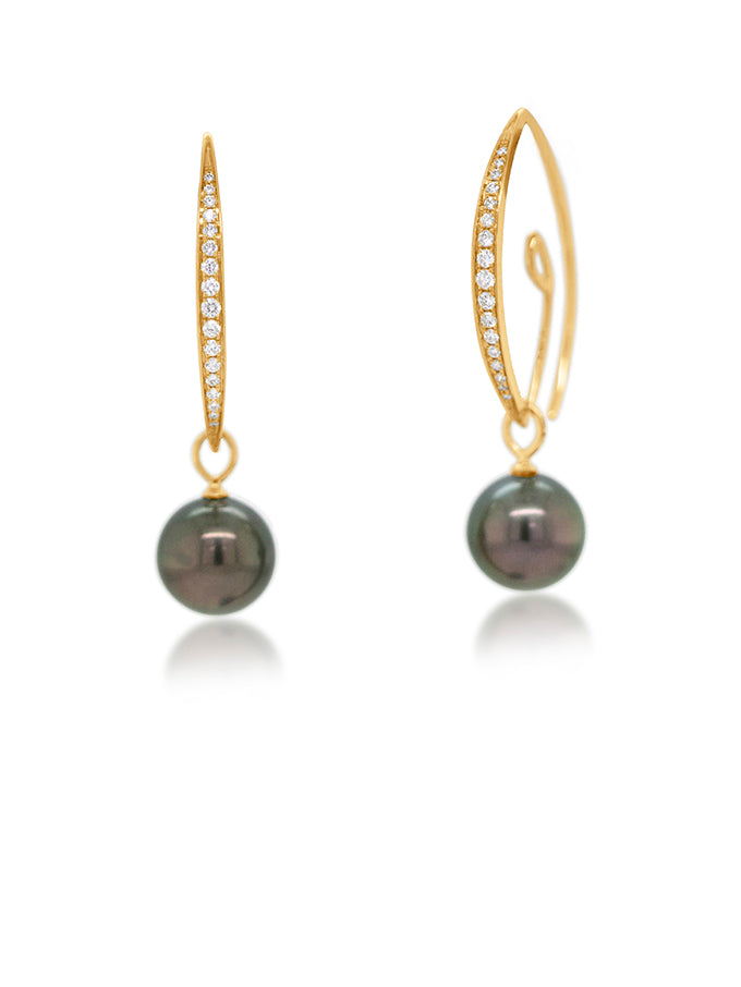 Tahitian & Diamond Earrings, 18K Yellow Gold