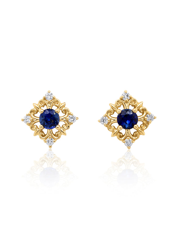 3.5mm Sapphire & 0.10 Carat Diamond Earrings in 9 Carat Yellow Gold