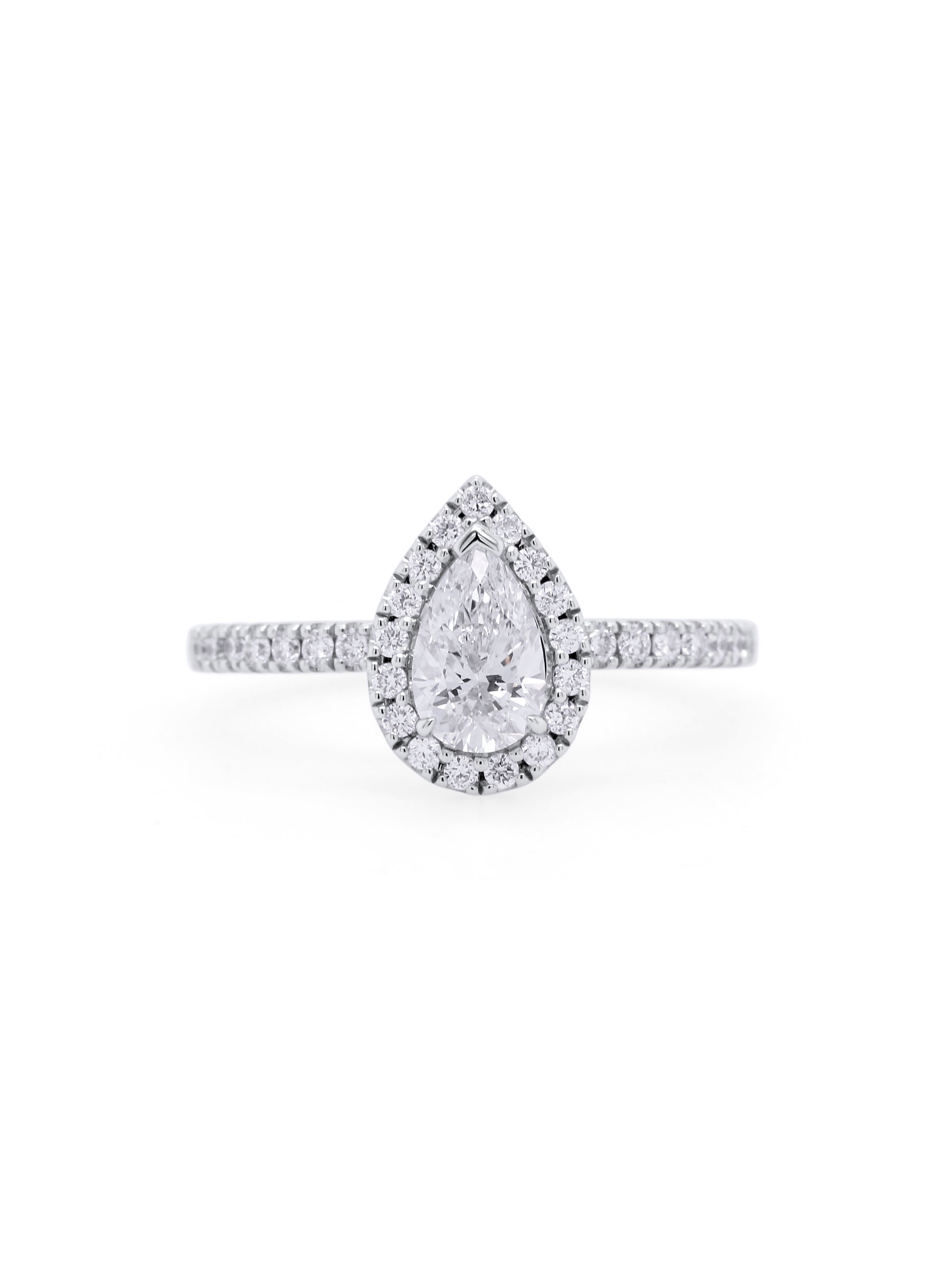 Lab Grown Pear Cut Diamond Ring, 18K White Gold, DT=1.07ct.