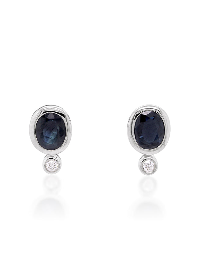Indulge in elegance with our Oval Sapphire & Diamond Earrings, set in White Gold. Each stud features a mesmerizing oval sapphire paired with a sparkling diamond accent. Meticulously crafted, they radiate sophistication and charm, making them a timeless addition to any jewelry collection.