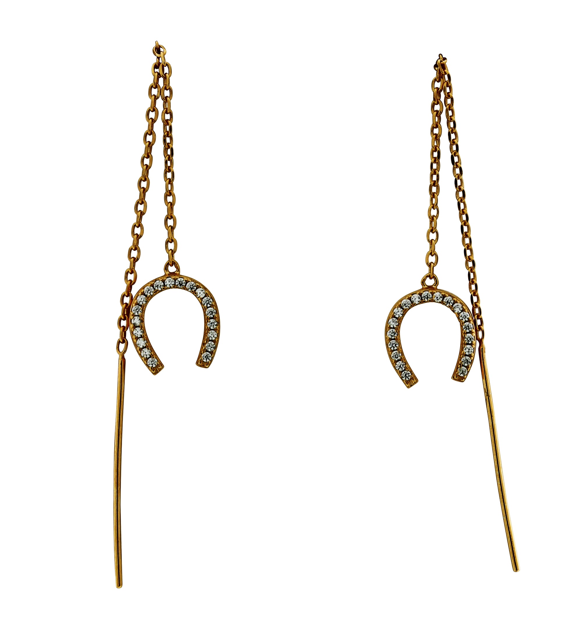 The drop detail creates an elegant detail look that is universally flattering, while the horseshoe and cubic zirconia details, give the piece a unique edge. Â