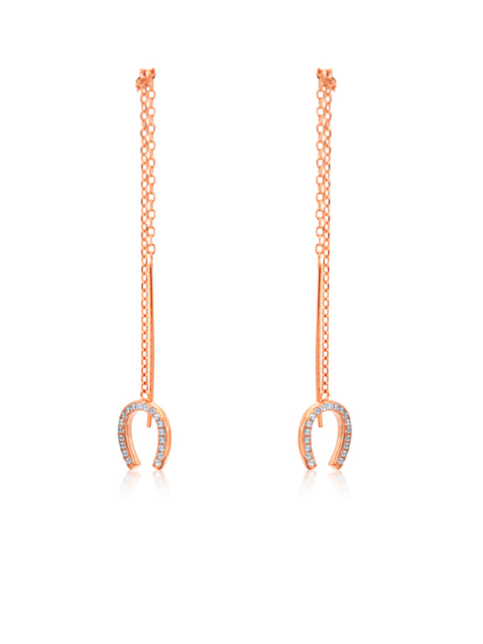 Lucky Horseshoe Threads CZ Set, Rose Gold Plated.