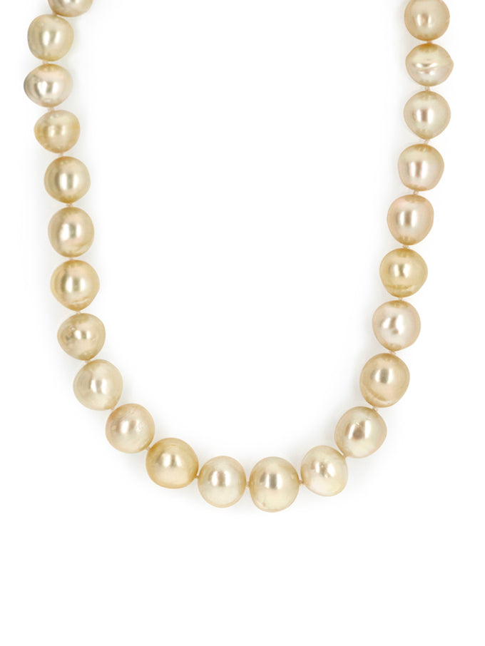 Golden South Sea Pearl Strand. 14K Yellow Gold Clasp, 10.5-13.8mm.