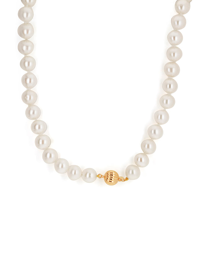FWP 10-11mm, 9K YG clasp, 45cm knotted.
