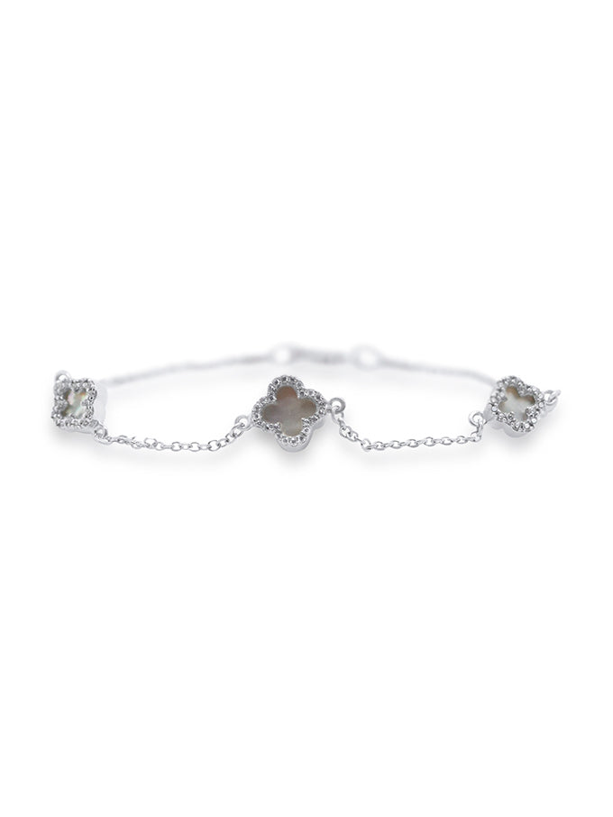 Cubic Zirconia Three Flower Bracelet in 9 Carat White Gold