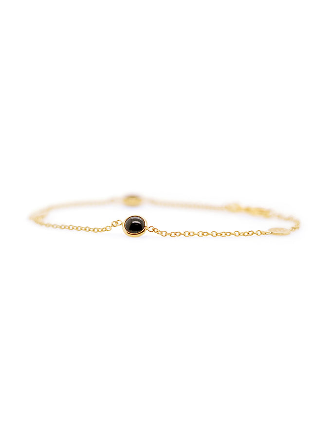Add a touch of mystique to your ensemble with our Black Onyx Disk Bracelet. Crafted from luxurious 9 Carat Yellow Gold, this piece features stunning black onyx disks delicately strung along a dainty chain. Effortlessly chic, it's the perfect accessory to elevate any look with a hint of allure.