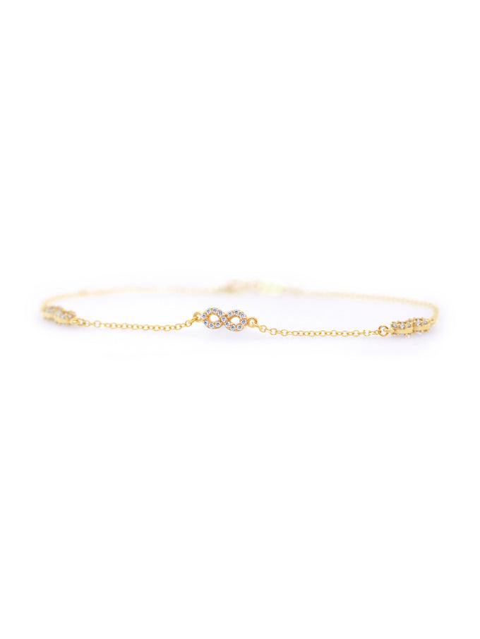 3 Cubic Zirconia Set Infinity Emblem Bracelet in 9 Carat Yellow Gold