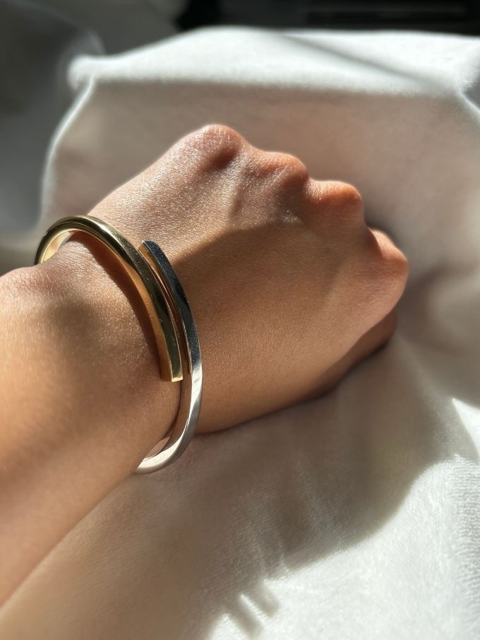 Two Tone Split Yellow and White Gold Bangle in 9 Carat Gold