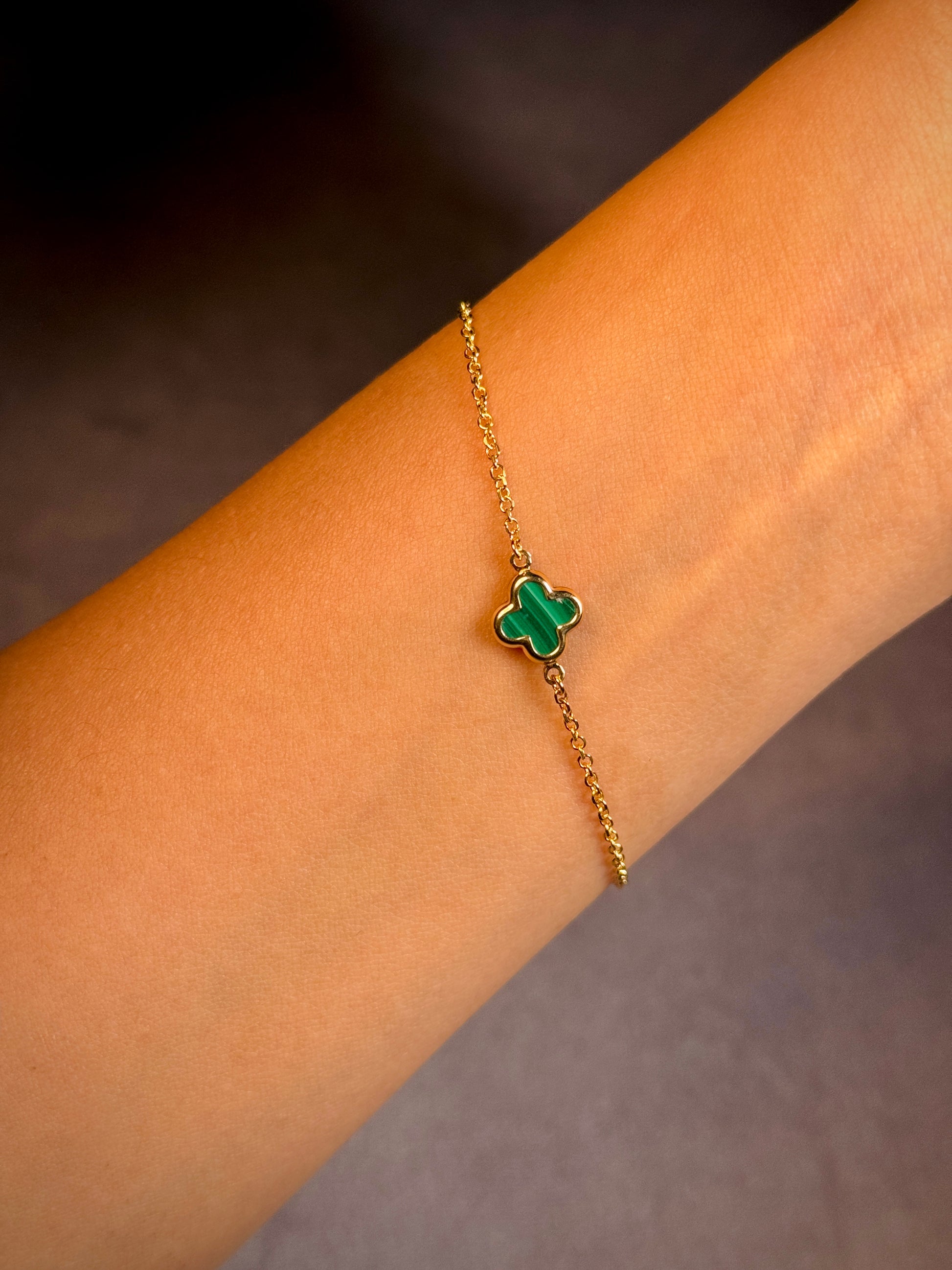 Small Malachite Clover Bracelet in 9 Carat Yellow Gold